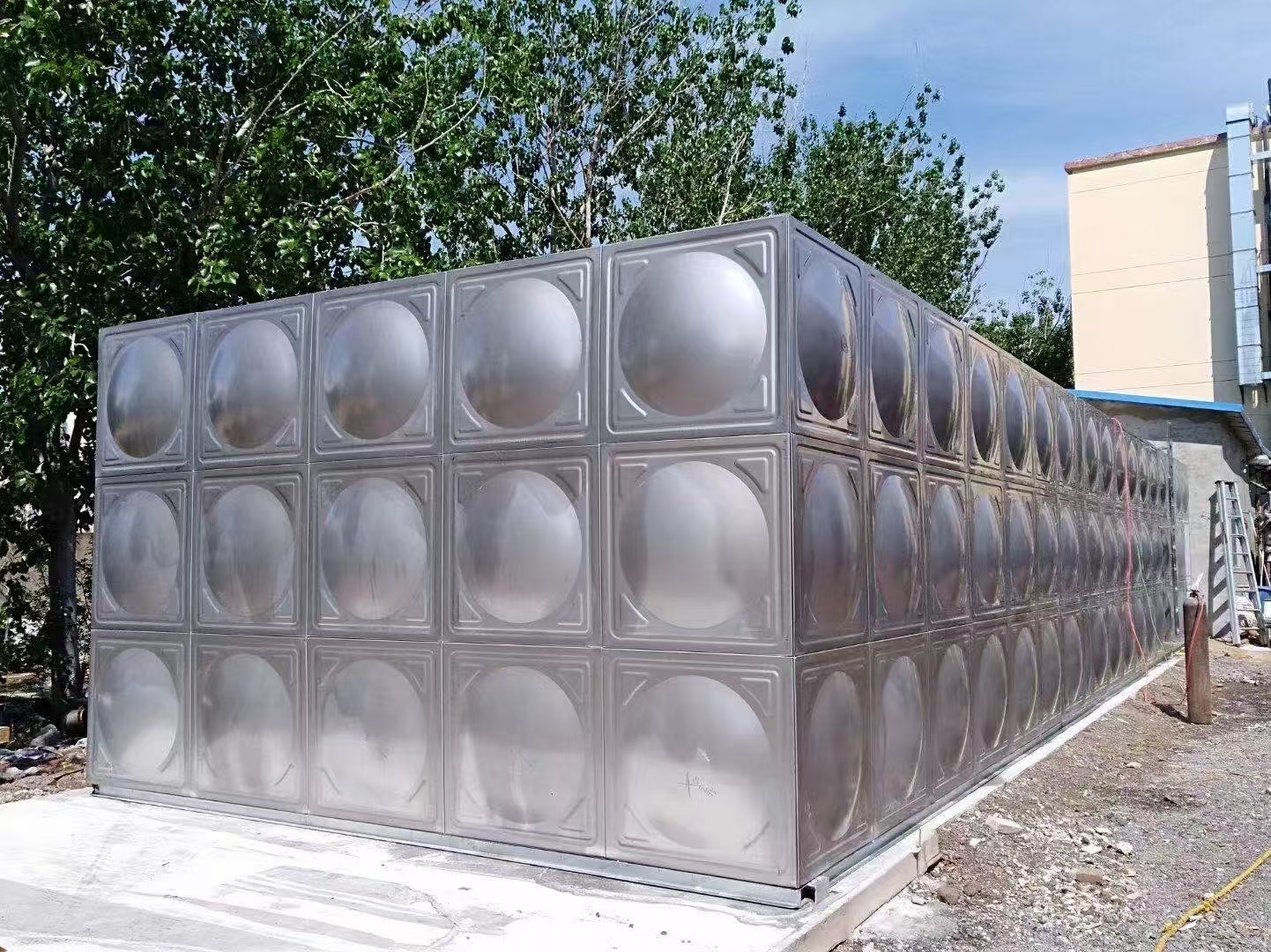 1、焊接底架:根據(jù)水箱板塊尺寸確定槽鋼的間距,首先將槽鋼點(diǎn)焊固定,用水平尺 校 對,其平整然后再整體焊接。